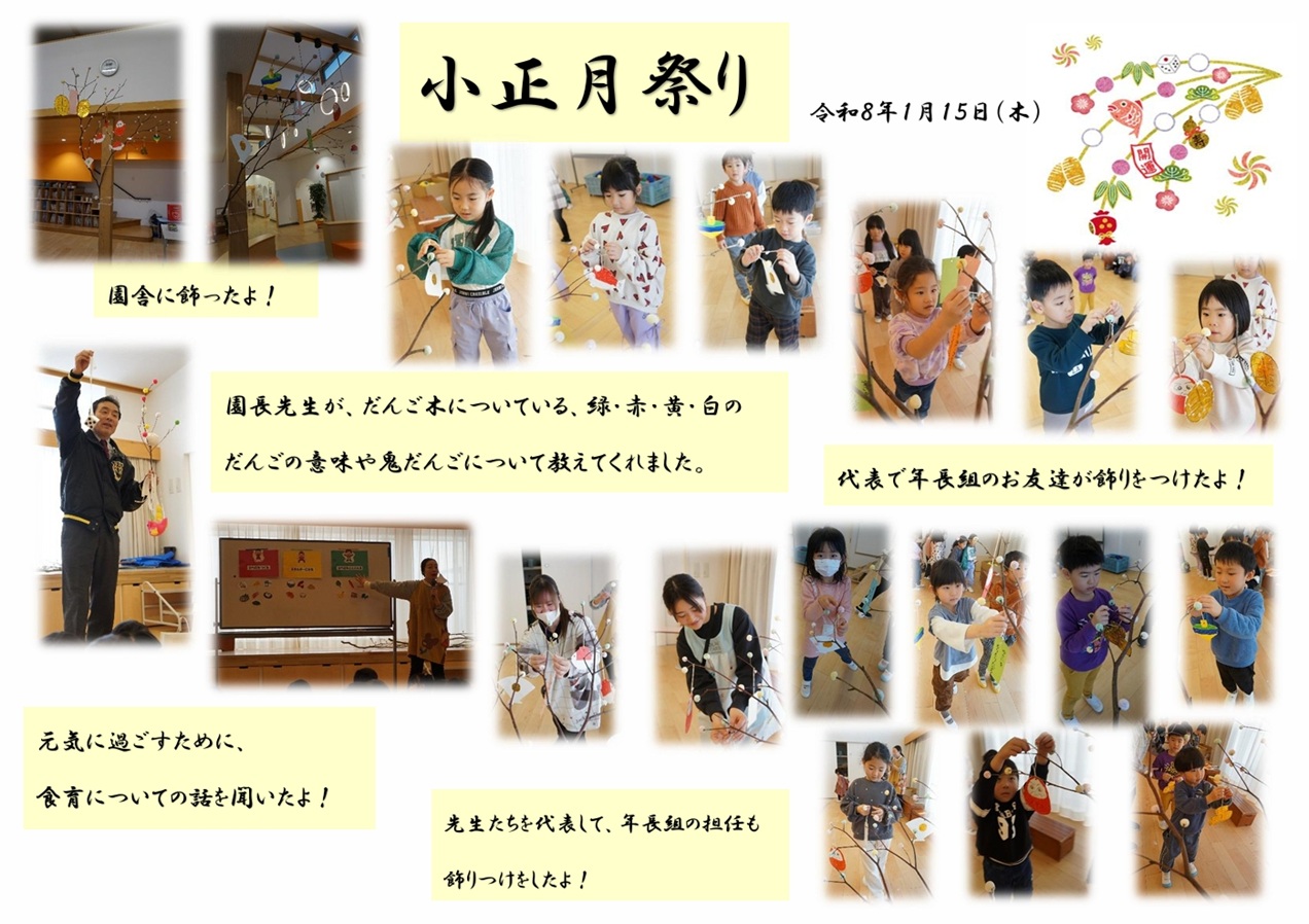 | 15日(木) | 身体測定(以上児)・小正月祭り | |